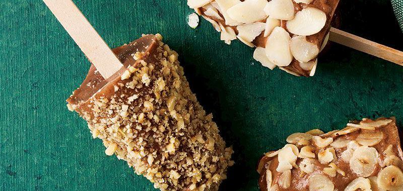 - Ocaktan alıp tereyağını ekleyin. Ilınınca pekmezi ilave edin. Buzluğa dayanaklı küçük kaplara paylaştırın. Ortalarına dondurma çubukları saplayın.