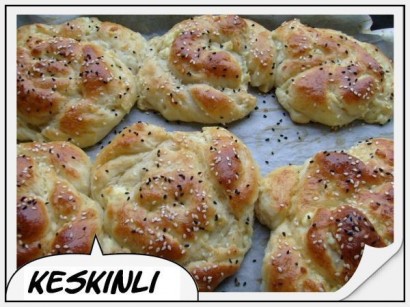 - Tepsiye dizilip yumurta sarisi ve susamla cörek otu serpilip