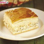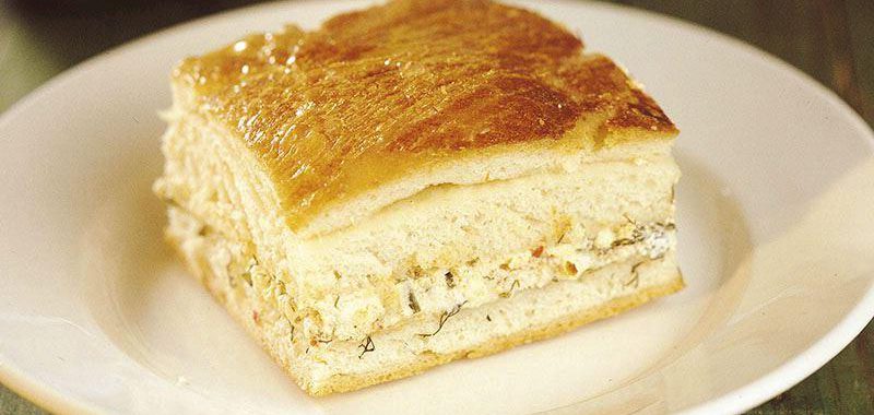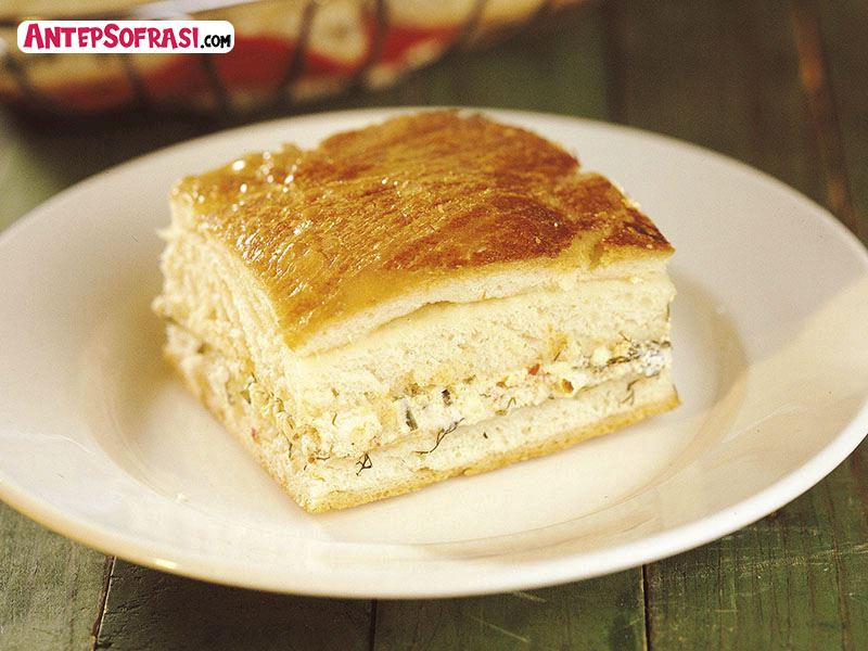 Fırın tepsisini yağlayın. Hamuru ikiye bölüp unlanmış zeminde tepsi büyüklüğünde açın. Birinci hamuru tepsiye yerleştirip üzerini yarım çay bardağı eritilmiş yağ gezdirin. Peynirli iç malzemeyi yayıp üzerine ikinci hamuru yerleştirin. Hamurun üzerini yağlayıp önceden ısıtılmış 200 dereceli ayarlı fırında 30 dakika pişirin. Ilınınca dilimleyip servis yapın.
