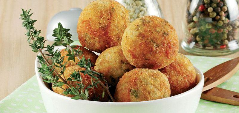 Lezzet Davet sofralarınız için harika tarifler sunuyor. Pirinci üzerini geçecek miktarda su ile birlikte bir tencereye koyun. Tuz ekleyin. Yumuşayıncaya kadar pişirin. Suyunu süzün. Maydanozu ince ince kıyıp pirince karıştırın. Sarımsaklı çeşni ve kekik ekleyin. Buzdolabına alın ve sıkılaşıncaya kadar bekletin. Peynirleri küp şeklinde kesin. Pirinçten küçük parçalar alıp yuvarlayın. İçlerine birer tane peynir küpünden koyup yuvarlayarak top şekli verin. Yumurtaları küçük bir kasede çırpın. Pirinçli topları önce çırpılmış yumurtaya daha sonra karabiber eklenmiş galeta ununa bulayın. Ayçiçeği yağını derin bir kızartma tenceresinde kızdırın. Pirinç toplarını altın rengi oluncaya kadar kızartın. Kağıt havlu üzerine alarak fazla yağını süzdürün. Sıcak olarak servis yapın.