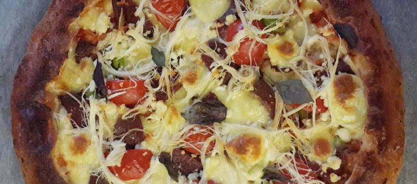 Taze fesleğen yapraklarıyla süslediğiniz pizzayı, dilimledikten sonra sevdiklerinizle paylaşın.