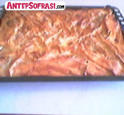 - İkinci yufka fazla kısımları tepsinin ortasına doğru toparlanarak konur.