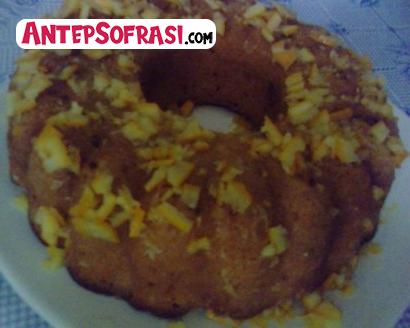- İçerisine un, kabartma tozu ve vanilya elenerek konulur ve 1 portakal kabuğu rendesi ilave edilip karıştırılarak yağlanmış kalıba yerleştirilip fırında pişirilir.