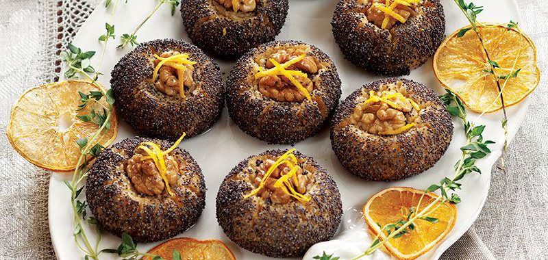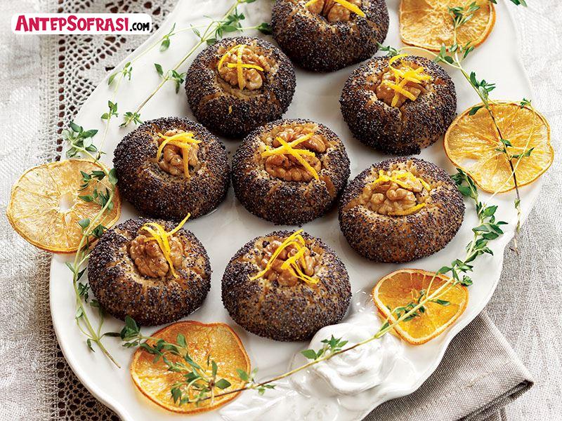 Şerbet için şeker, su ve portakal suyunu tencereye alın. Orta ateşte kaynamaya bırakın. Kaynadıktan sonra limon suyunu ekleyip 5-6 dakika daha kaynatın ve ocaktan alarak soğumaya bırakın. Margarin, yumurta, vanilya, rendelenmiş portakal kabuğu, irmik ve şekeri bir kapta karıştırın. Un ve kabartma tozunu ekleyip iyice yoğurun. Hamurdan parçalar kopartıp yuvarlayın. Önce süte ardından haşhaş tohumuna bulayın ve yağlanmış tepsiye dizin. Her birinin üzerine ceviz içi yerleştirip 180 derece fırında kızarıncaya kadar pişirin. Tatlıları fırından alıp 5 dakika beklettikten sonra şerbeti üzerine kepçe ile gezdirin. Ara ara tepsideki şerbeti kaşık ile üzerine gezdirin ve en az 2 saat beklettikten sonra servis yapın.