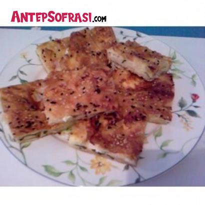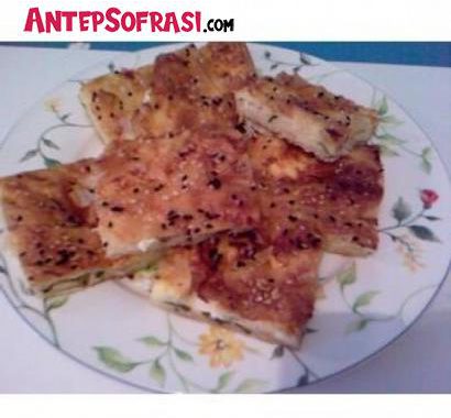 - Sonra yaglanmis tepsiye 1 yufkayi büzüstürerek koyup üzerine hazirladiginiz sostan serpistirin ve tekrar ayni islemi yapin..2 kat yukayi bu sekilde tepsiye yerlestirdikten sonra tekrar sos ve hazirladiginiz harçtan koyun.Ve geri kalan 2 yufkaylada ayni islemi yapip son yufkanin üzerine 1 yumurta sarisi ve 2 kasik siviyagi karistirarak sürün.( siviyag böregin üstünün parlak olmasini saglar) En son olarak üzerine susam ve çörek otuda serpistirerek firinda 200 derecede pisirin ...