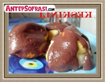 - Profiterolleri servis yapacaginiz kabin icine yerlestirin ve üzerine hazir cikolata sos gezdirin