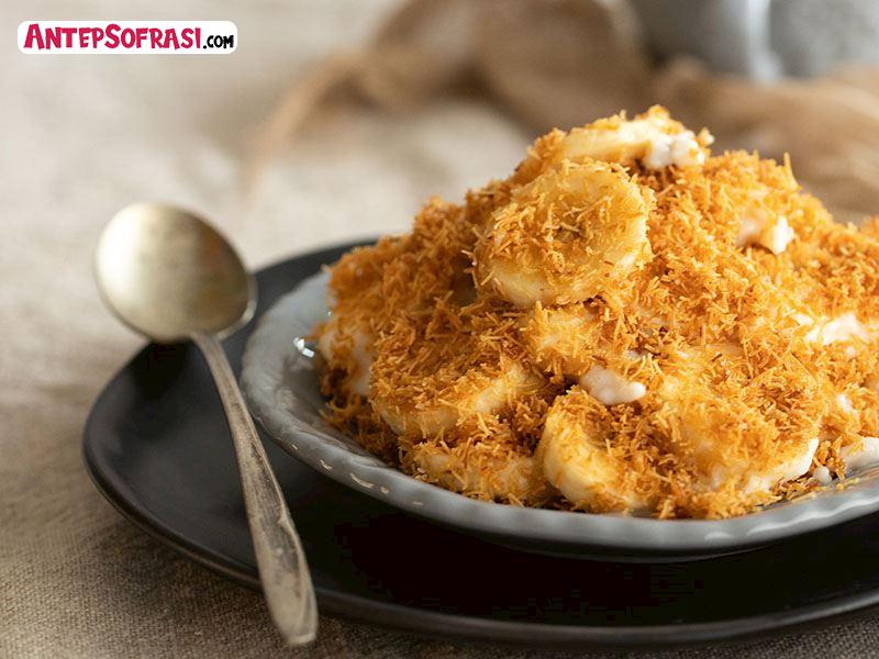 - Kadayıfların yarısını kare şeklindeki çukur bir kaba yayın. Üzerine pudingi döküp ince dilimlenmiş muzları yerleştirin. Kadayıfların kalanını da muzların üzerini tamamen kapatacak şekilde yayın. Buzdolabında soğuttuktan sonra servis yapın.