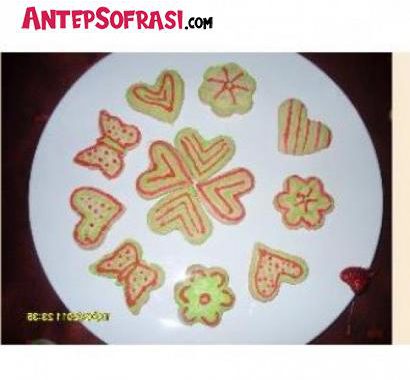 kurabiye malzemeleri yoğurulup hamur merdane ile açılır kalıplarla kesilerek 10 dk kadar fırınlanır. ÜZERİ İÇİN: 250 gr pudra şekeri--1 yumurta akı ve...