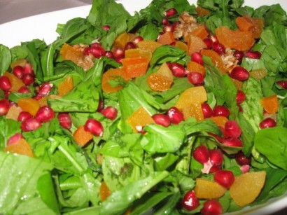 - Nar tanelerini ve kayısıları rokaya ilave edin.