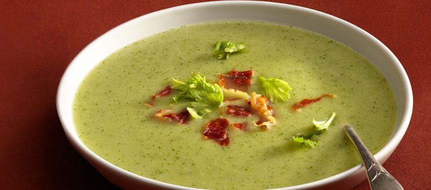 İnce doğradığınız kereviz sapları, yemeklik doğradığınız soğan ve küp doğradığınız patatesi tereyağında yaklaşık 10 dakika soteleyin. Sıcak tavuk suyunu ilave edip kaynatın. Tavuk suyu kaynamaya başlayınca altını kısın. Kapağı kapalı olarak sebzeler yumuşayıncaya kadar yaklaşık 30 dakika pişirin. çorbayı ocaktan alın ve rendelediğiniz rokfor peynirini ilave edin. Tuz ve karabiber ile tatlandırın. Pürüzsüz bir kıvam elde edinceye kadar çorbanızı blenderdan geçirin. Kremadan bir yemek kaşığı kadar ayırın. Kalanını çorbaya ilave edip bir taşım daha kaynatın. Üzerini çırpılmış krema, rokfor peyniri ve kekik ile süsleyerek servis yapın.