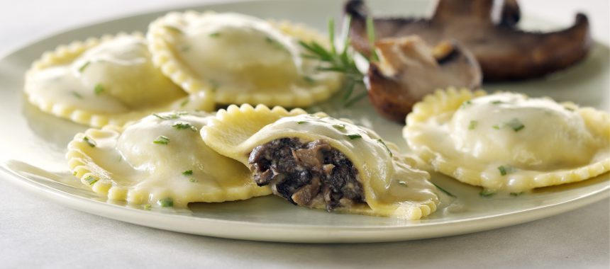 1 cm aralıklarla hamur kalıbı yardımıyla doldurduğunuz kısımları kesin. Kenarlarını parmakla bastırarak kapatın. Hazır olan ravioliyi tuzlu kaynamış suya atın ve 2-3 dakika bekletin. Suyunu süzün. Sosu için, malzemeleri karıştırın ve tavaya koyun. Devamlı karıştırarak soteleyin. Ravioli’nin üzerine ekleyin.