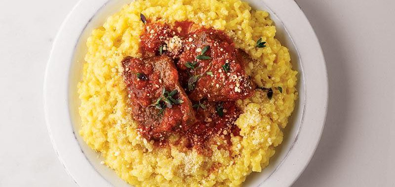 - Yapışmaz yüzeyli bir tavada tereyağını eritin ve bonfile dilimlerinin her iki yüzünü de çevirerek hafifçe kızartın. Rendelenmiş sarımsağı ve domates sosunu ilave edip et yumuşayana kadar kısık ateşte pişirin. Tuz, karabiber ve taze kekik yapraklarını ekleyip ocaktan alın. Risottonun üzerine bonfile dilimini yerleştirin ve sosundan üzerine gezdirin. Taze kekik yapraklarını serperek sıcak servis yapın.