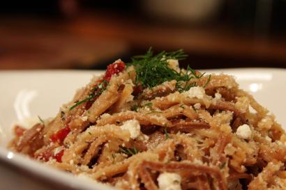 - Erişteleri biraz sulu olarak servis tabağına alın.