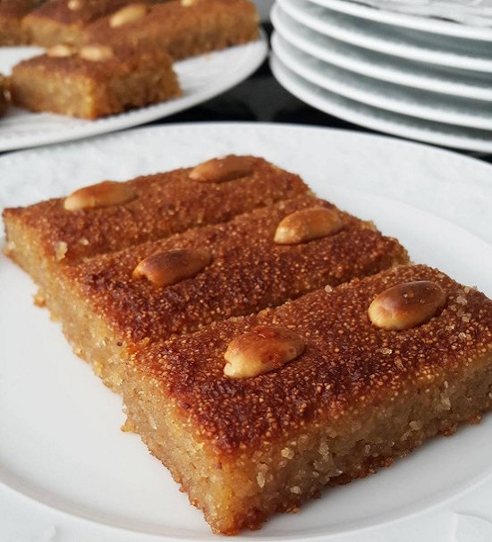 Bir tepsinin tabanına 1 yemek kaşığı pekmez sürülüp, dinlendirilmiş irmik karışımı bu tepsiye boşaltılır. Tepsideki irmik üzerine, kalan 1 yemek kaşığı pekmezi sürerek, orta hararetteki fırında 50 dakika pişirilir.