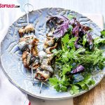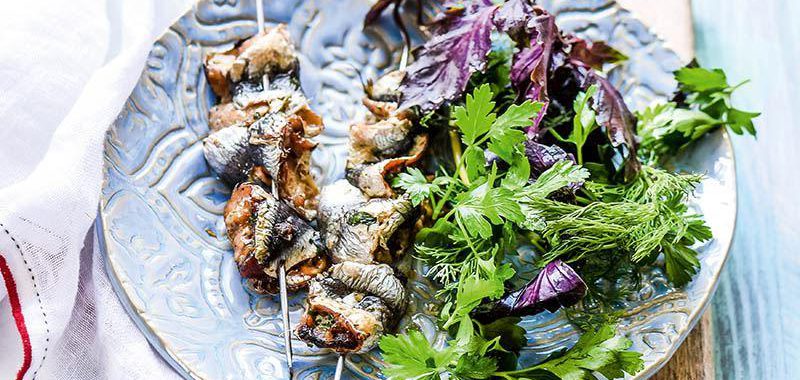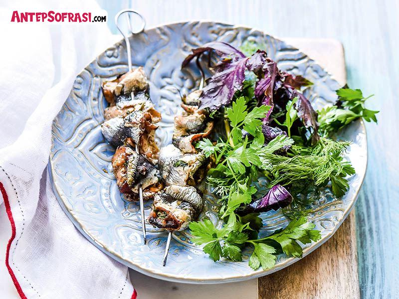- Sardalya hariç tüm malzemeyi karıştırın, iki balık arasına bir çay kaşığı koyup sandviç gibi kapatın. Şişlere açılmayacak şekilde geçirin, fırın kağıdı döşeli tepsiye dizin. Üzerine zeytinyağı sürün ve biraz limon sıkıp tuzlayın. 200 derecede ısınmış fırının ızgarasında 15 dakika pişirip yeşilliklerle servis edin.