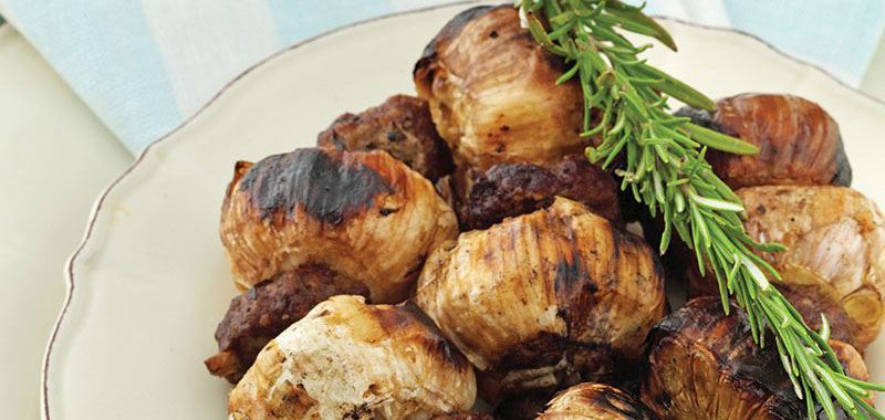 Daha sonra ikiye kesilmiş sarımsaklar tepsiye, 1 parça sarımsak ve bir parça et art arda gelecek şekilde dizilir.