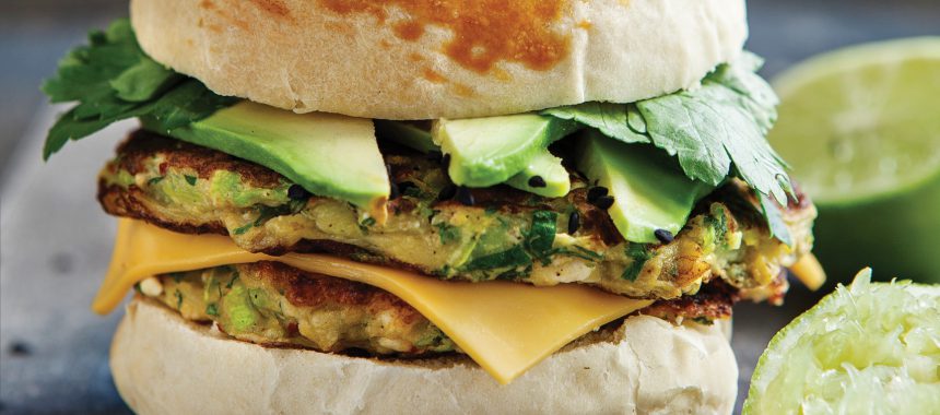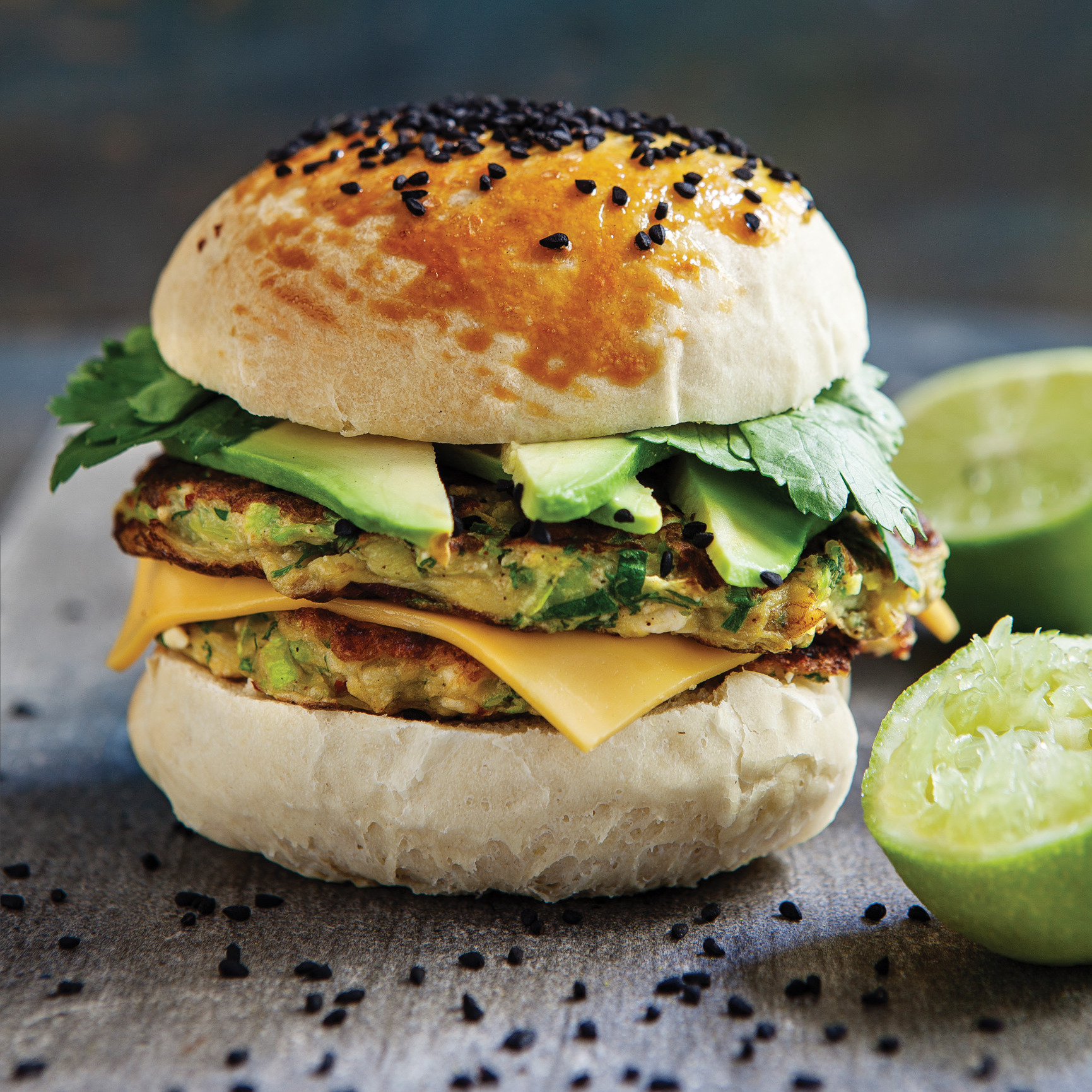 Soğan, havuç, patates ve kabağı rendeleyin. Maydanozu ince kıyın. Sarımsağı ezin. Tüm malzemeyi yumurta, galeta unu ve haşlanmış mercimekle karıştırın. Soya sosu, kimyon, köri, tuz ve karabiberle tatlandırın. Hamburger ekmeğinizden biraz büyük olacak şekilde yassı köfte şekli verin. Tavayı ısıtın, çok az yağ koyun ve arkalı önlü pişirin. Köftelerin pişen taraflarına iki dilim çedar peyniri koyup erimesini sağlayın. Ekmekleri ikiye ayırıp aynı tavada ısıtın. Ekmeklerin alt tabanına birer yemek kaşığı barbekü sos sürün. Marul yaprağını koyun. üstüne köfte ve salatalık turşusu koyup diğer ekmek dilimiyle kapatın. Sıcak servis yapın.