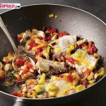 - Soğanı zar şeklinde doğrayıp zeytinyağının yarısı ile yumuşayana kadar kavurun. İnce kıyılmış kereviz sapı, pazı ve ince doğranmış kapya biber ile pırasayı ilave edin.