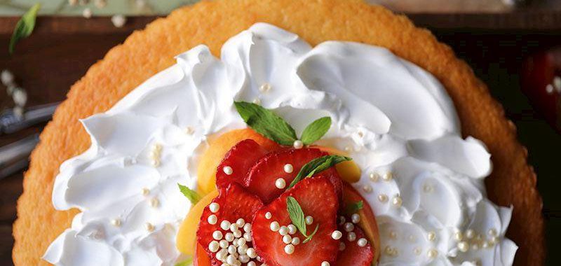 - Kek oda sıcaklığına gelince labne kremasını üzerine sürün ve nane, şeftali ve çilek dilimleriyle süsleyin. Arzuya göre küçük inci şekerler de ekleyebilirsiniz.