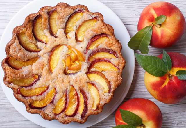Şeftali dilimlerini hamura hafifçe gömmezseniz istediğimizden daha fazla karamelize olup tadını bozacaktır.