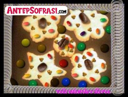 unYAPILIŞI:margarinle şekeri iyice eritip diğer malzemelerle birlikte yumuşakbir hamur yoğuruyoruz.kalıplarla keserek 150 derecedeki fırında çok hafif...
