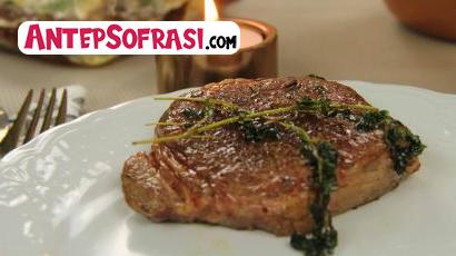 - Tereyağ, taze kekik ve kurutulmuş fesleğeni ekleyip biftekleri pişirmeye devam edin.