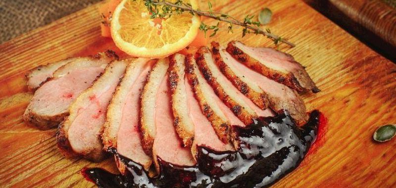 - Ördeğin göğsünü, derisinin üzerine yerleştirin ve tavanın altını açarak ağır ağır 8 dakika pişirin.