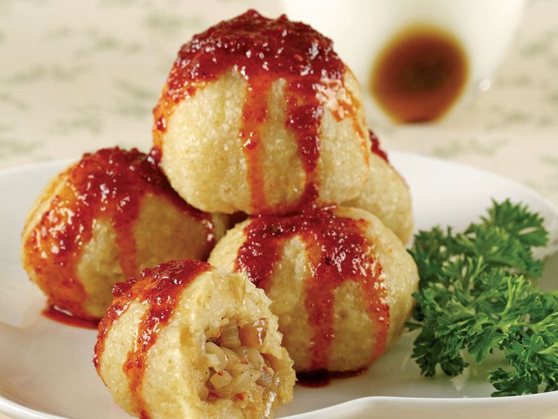 - Hamurdan yumurta büyüklüğünde parçalar alıp açın. İçine soğanlı harçtan doldurup kapatın.