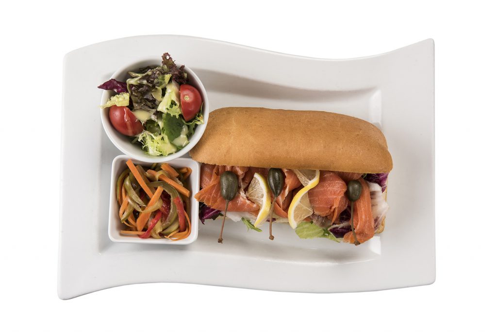 İkiye böldüğünüz ekmeğe mayonez sürün, sırasıyla 2 adet kıvırcık, 2 dilim domates, pastırma ve pişirdiğiniz somonu yerleştirin. Yanında cipsle birlikte sıcak sıcak servis yapın.