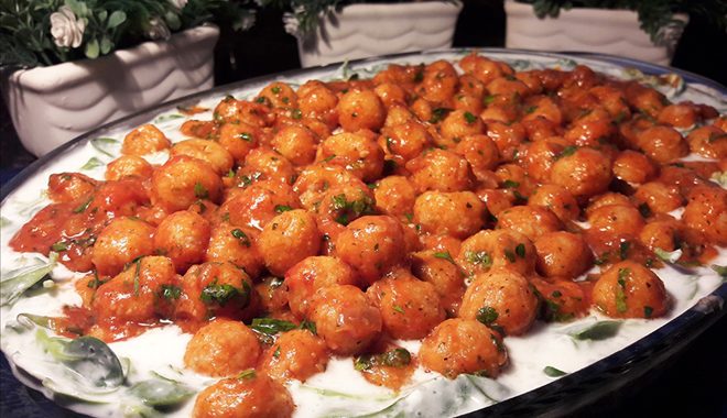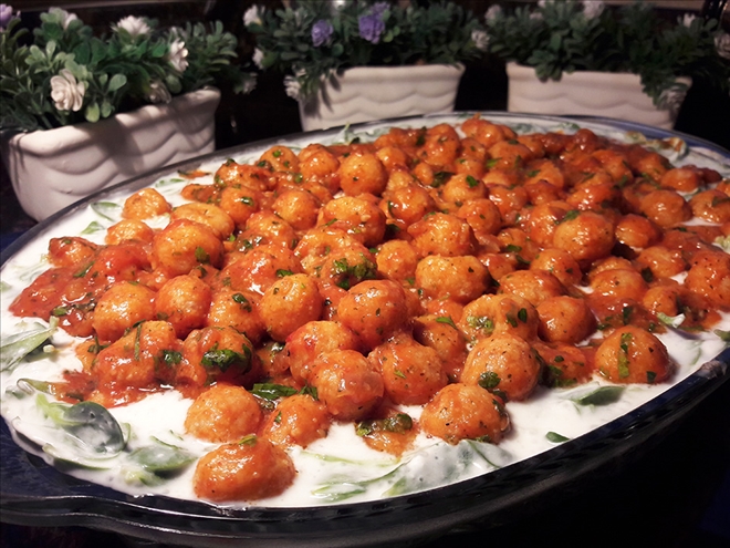 Kaynayan suyun üzerine süzgeçteki yuvarlanmış köfteler yerleştirilerek, ağzı kapalı bir şekilde 15 dakika buharda pişirilir. Pişen köfteler genişçe bir tepsiye boşaltılıp soğumaya bırakılır.