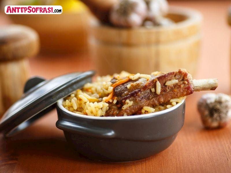 - Pişirme işleminin ardından kaburganın içini açın ve servis tabaklarına pilavı koyun.