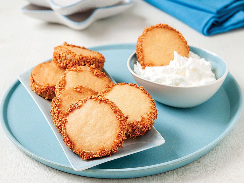 - Kenarlarına da tahin sürün ve kavrulmuş susama bulayarak servis yapın.