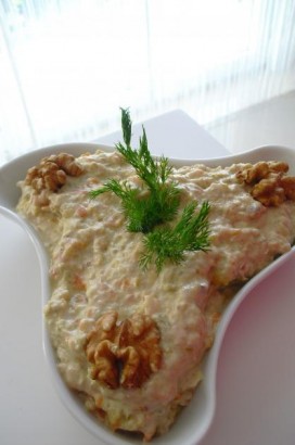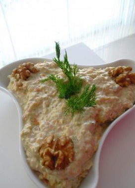 - Kimyon, kırmızı tozbiber, 1 kahve fincanı ceviz içi, zeytinyağı ve tuzu ayrı bir kasede karıştırıp tahinli karışıma ekleyin.