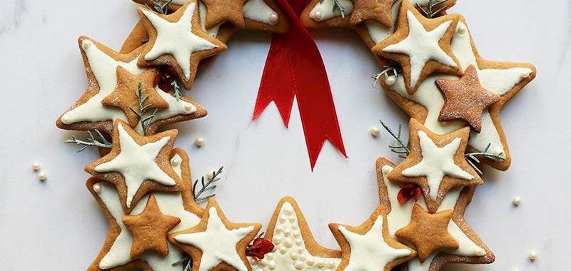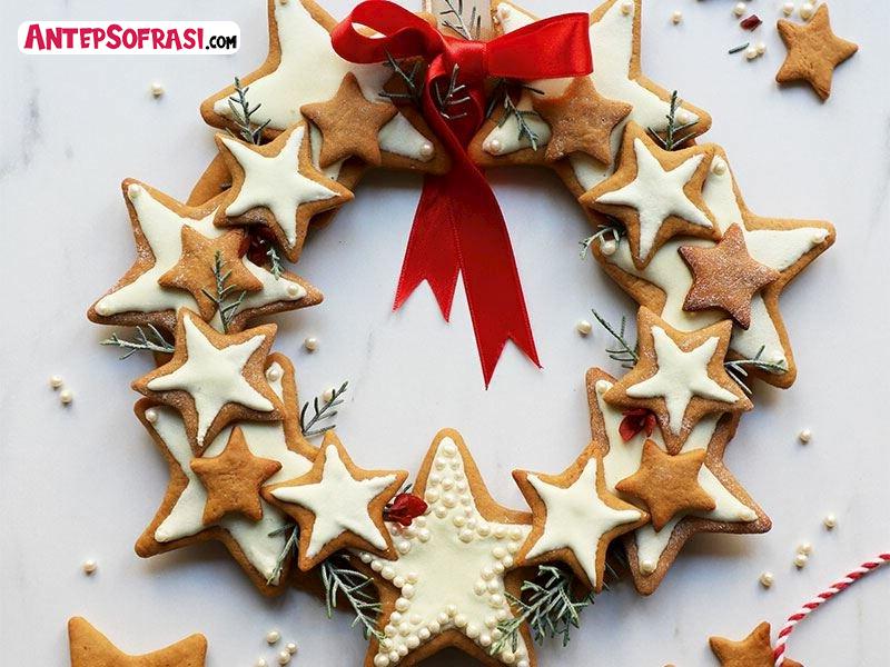 - Çelenk halkasının üzerine nasıl bir tasarım yapacağınıza karar verip istediğiniz yıldızları royal icing ile kaplayıp kurumaya bırakın.