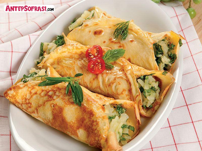 Taze kekikli, maydanozlu ve patatesli krep yapılışı