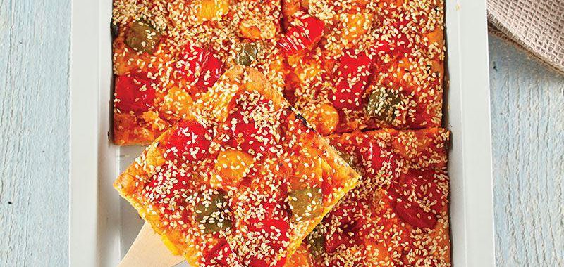 - Üzerine hazırlanan soğanlı iç harcı ve kalın doğradığınız biberleri ekleyin. Son olarak susam serpip önceden 200 derece ısıtılmış fırında pişirin.