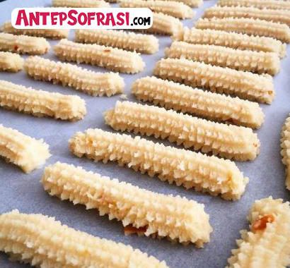 - Yapılışı:Hamuru yoğuruyoruz varsa tırtıllı kurabiye kalıbı ile şekillendirp pişiriyoruz yada ona benzetmeye çalışıyoruz:) soğuduktan sonra üzerine pudra şekeri serpip servis yapıyoruz.Afiyet olsun..
