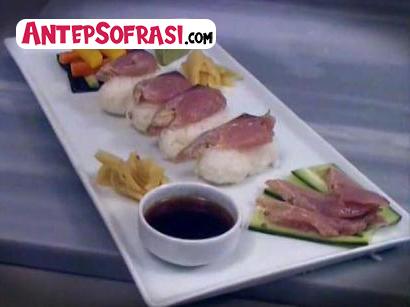 - Servis tabağında nori'nin üzerine sebzeleri yerleştirin, yanında dilimlediğiniz balık, sushi pirinci, baharat ve soslarla servis yapın.