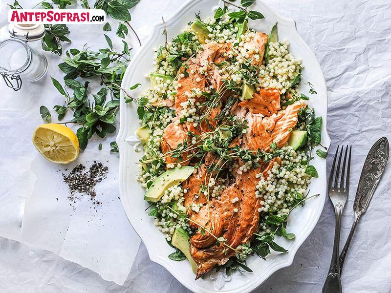 Tütsülenmiş somonlu avokadolu kuskus , kolay Tütsülenmiş somonlu avokadolu kuskus yapımı, Tütsülenmiş somonlu avokadolu kuskus resimli anlatımı ve birbirinden lezzetli Balık Yemekleri, Lezzet'te!