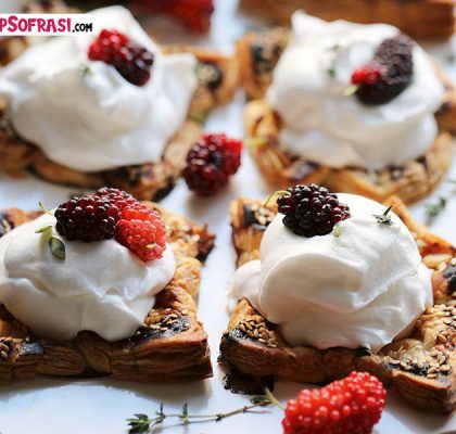 - Milföylerin üzerine yumurta sarısı sürün. Önceden ısıtılmış 180 dereceli fırında pişirin.