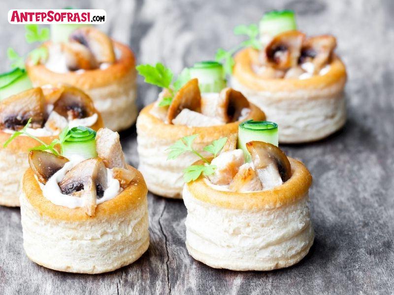 - Milföyler kızardığında fırından çıkartın. Soğuyan mantarlı harcı içlerine doldurun.