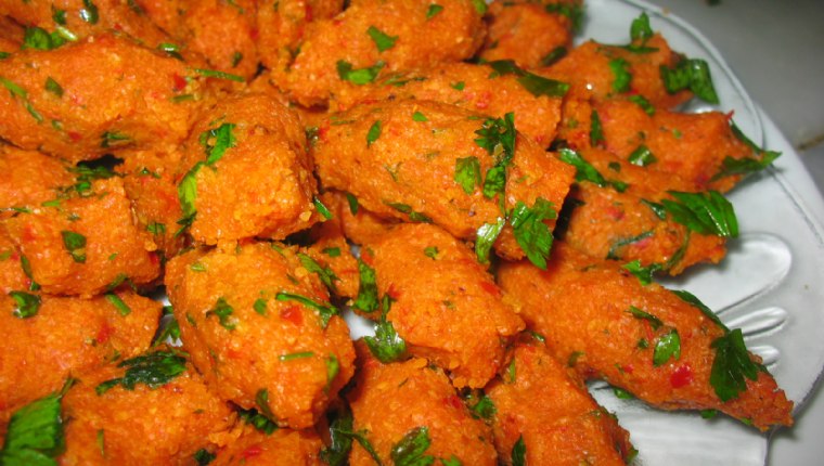 Köftelik bulgur ince doğranmış soğan ve sarımsaklar, domates ve biber salçası, yarım domates veya suyumuzun yarısını ,limon ,baharatları yoğurma kabımında karıştırılarak yoğrulur.