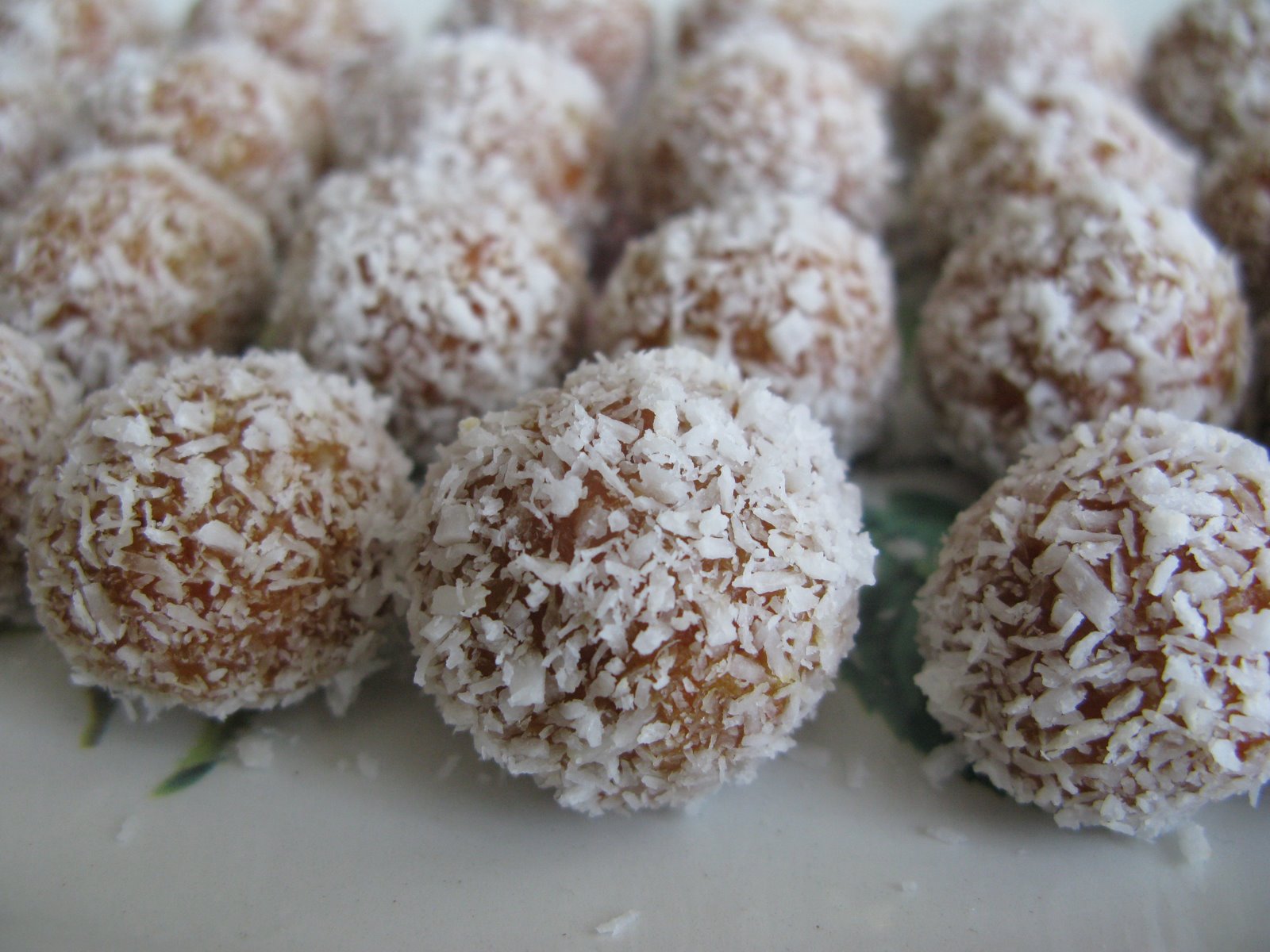 Cevizden daha ufak parçalar koparıp yuvarlayın. Hindistan cevizine bulayıp servis tabağına alın.