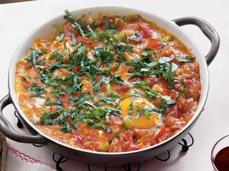- Yumurtaları kırıp ince kıydığınız taze otları ilave edin. Yumurtaları karıştırmadan göz göz olacak şekilde bırakın. Tuz ve baharatlarla tatlandırıp ocaktan alın. Yanında kızarmış ekmek dilimleri ile sıcak servis yapın.