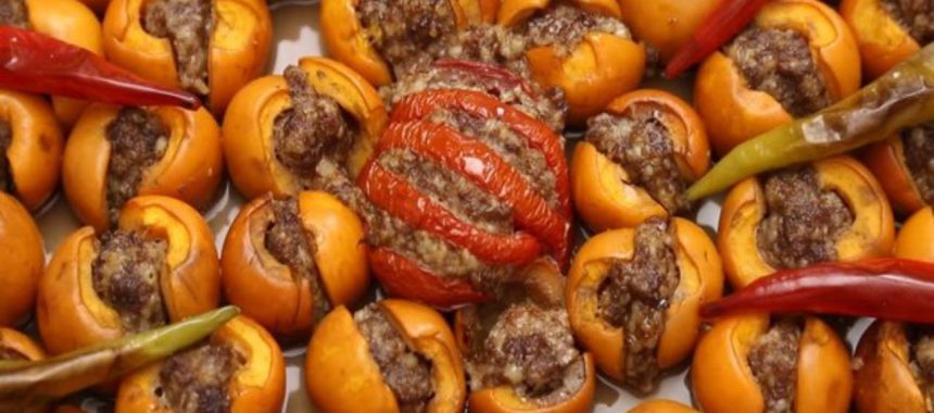 Yeni dünyalar yıkanır, ikiye kesilir, çekirdekleri çıkarılır ve pişmiş etin üzerine atılır. Yeni dünyalar 10 dakika pişirilir ve üzerine yenibahar ve karabiber serpilir.