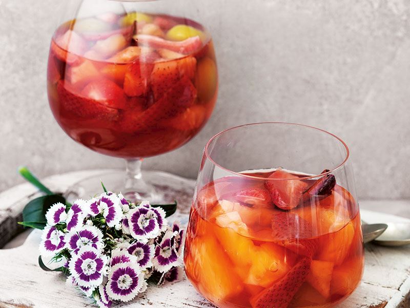 - Küp doğranmış ananasları ve boyuna ikiye kesilmiş çilekleri ilave edin. 10 dakika kısık ateşte kaynatmaya devam edin. Ocaktan alın ve soğuduktan sonra servis yapın.
