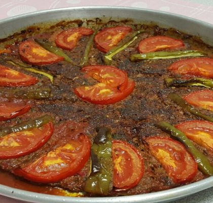 Kıyma, zeytinyağı ve tuz ile kavrulur. Kavrulan kıymanın üzerine karabiber ve pul biber ilave ederek karıştırılır.