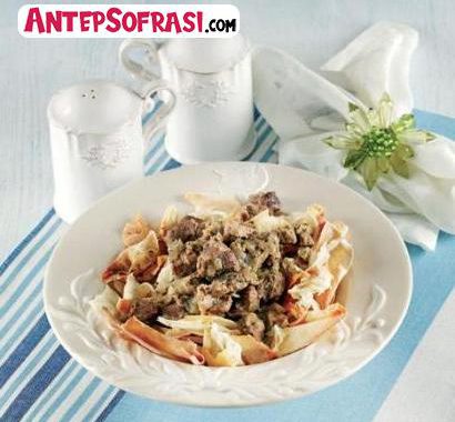 - Kızarmış yufkaları servis tabaklarına paylaştırıp üzerine pişen etin suyundan gezdirerek yufkaları ıslatın.