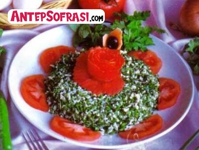 - Haşlanmış yumurta beyazı çok ince şekilde doğranır. İçine taze nane ve maydanoz ince ince doğranarak ilave edilir. Bu karışıma tuz, karabiber ve zeytinyağı ile karıştırılıp servise hazır hale getirilir.