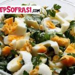 - Maydanozlar kıyılır ve maydanoz yatağında üzerine yumurta dilimleri
